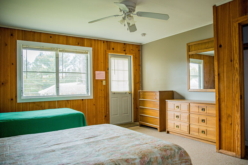 Poolside: There are eight separate motel-style rooms. Each one has a double or queen bed and twin-size bed with both a ceiling fan and air-conditioning. This style room can accommodate up to 3 people total.